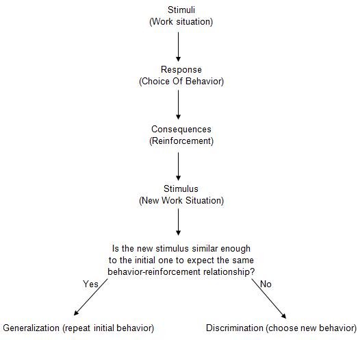 Consider the plant manager of a manufacturing company who has a history of effective troubleshooting. Over the years he has been assigned to several plants, each with a serious operating problem. After successfully dealing with the difficulties, he has always received an extended vacation, a bonus and an increase in his base salary. He has learned the basic contingencies or requirements of reinforcement for his job. The stimulus is the assignment, the response is correcting problems and the consequences are several positive reinforcers. When the manager gets his next assignment, he will probably generalize from his past experiences even though he will be in a different plant with different problems and employees he will know what is expected of him and understand what it takes to be rewarded.