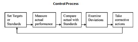Management Control Process involves establishment of standards or targets of performance, measurement of actual performance, and comparison of actual performance with standards, examining the causes for any deviations in performance and taking corrective actions.