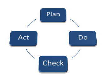 In a Deming’s wheel, the PLAN defines the process, which ensures documentation and sets measurable objectives against it. The DO executes the process and collects the information required. The CHECK analyses the information in suitable format. The ACT obtains corrective action using Total Quality Management (TQM) techniques and methods and assesses future plans. At the end of each cycle the process is either standardized or targets are adjusted based on the analysis and the cycle continuous.