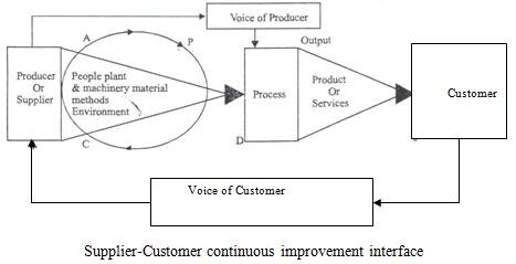 Quality is a continuous process that can be broken anywhere in the system of supply and customer service. By letting every person know how their activities help fulfill customer’s requirements, the organization can motivate their employees and supplies to provide quality consistently. They must also realize that throughout the organization they will have both internal customers and’ supplies to those outside the organization. In general, a process helps to change a set of inputs into desired output in the form of products or services. Proper investigation of the inputs and outputs of the organization help to determine the action to be taken for the improvement of the quality. The quest for continuous improvement of quality is a continuous cycle. The process on which continuous improvement is based is generally known as “Deming Wheel“. The wheel represented below shows a continuous movement in a certain direction. The idea behind this that the input, which generates activities with measurable output, is process and the perfection of the process is the ultimate objective.