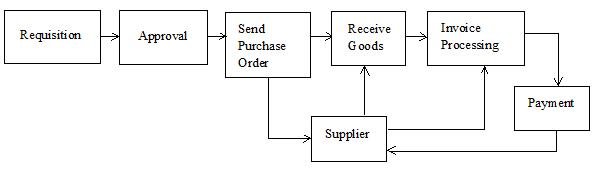 Purchase-to-pay process consists of financial transactions with the suppliers in a supply chain. Purchase-to-pay process starts with the buyer making the requisition and ends with the payment to the supplier. The buyer makes a purchase requisition and it is passed on to the purchasing department for approval. After getting the approval of the purchasing manager, a purchase order is sent to the supplier. On receiving the purchase order the supplier dispatches the shipment along with the invoice. On receiving the goods, the firm checks the shipment and the invoice to confirm whether the shipment matches the purchase order and the product quality/quantity is as desired. Upon confirmation, the accounts department pays the supplier.